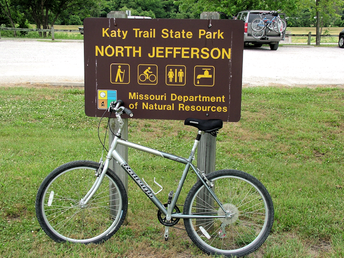 My second day would be more a Lewis day than a Clark day. I set out to ride a short stretch of the wonderful Katy Trail State Park. The term “park” here is misleading – this is a 200+ mile green corridor that runs from St Charles (nr St Louis) to Clinton. The vast majority of the route has been converted from disused railway tracks into a compacted gravel path suitable for sturdy road bikes as well as mountain bikes (it’s actually been inducted in the National Rail-Trail Hall of Fame. Yes. They have one.).