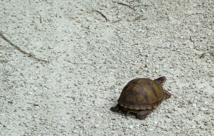 Being off-road, there are inevitaby twigs and sticks and small leaf-filled branches scattered along the path, and some large stones or small rocks, depending on your defintion. Except it turns out that some of the sticks are snakes and some of the rocks are turtles. I must have passed half a dozen turtles, just standing around in the middle of the track apparently oblivious to the bikes whizzing (or trundling in my case) by them. I also saw a rabbit, and plenty of birds that I didn’t recognise, both large and small. Unlike Lewis I didn’t stop and carefully draw each one (or bag me a specimen to send back to Washington).