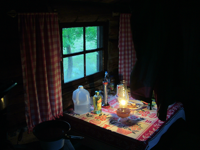 The cabin looks amazing – very rustic! Loving the West Hampstead-style meal, and the oil lamp.