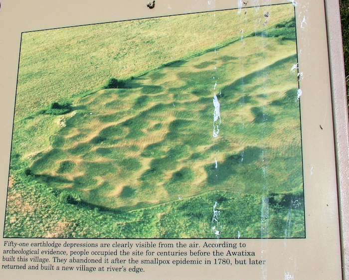Only one of the visible villages was around when Lewis & Clark came through, and that was almost certainly where Sacajawea was living. The Hidasta were not especially welcoming to the Corps, partly becasue the Mandan – who wanted the trade monopoly with the Americans – told the Hidasta that the expedition was going to kill them.